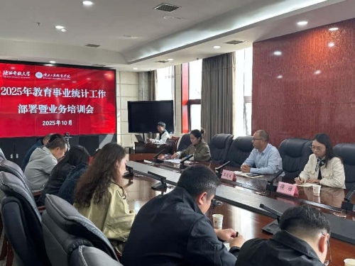 10月13日下午,学校在郭杜校区召开2025年教育事业统计工作动员部署暨业务培训会,校党委副书记王建斌出席会议并讲话,相关职能部门负责人及统计工作人员参加会议。