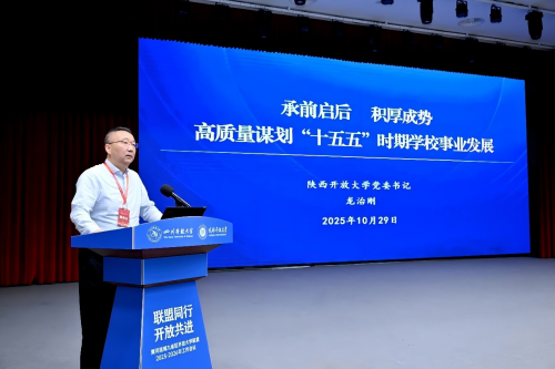 10月29日,由四川开放大学和成都开放大学主办,青海、甘肃、宁夏、内蒙古、陕西、山西、河南、山东、四川等地的12所开放大学共同参与的黄河流域九省区开放大学联盟2025-2026年工作会议在四川成都举行。国家开放大学、四川省教育厅、成都市教育局、黄河流域九省区开放大学相关领导及部门负责人出席会议。学校党委书记龙治刚受邀出席会议并作交流发言。